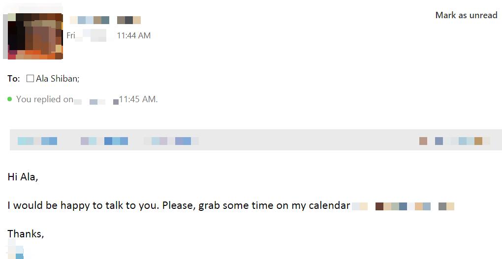 It’s naturally essential to have an interesting topic to discuss related to the expertise of the individual you’re reaching out to. I tend to read up on what they’ve been recently interviewed on, or the projects they’re involved with. I spend some time thinking about what likely challenges their team would face, and how I would approach their problems. By simulating the conversation in my head for a few times, I create more conversational opportunities and recognize the questions that might be moot or quickly leading to dead-ends. It also keeps my mind fresh, thinking about a broader scope of dilemmas and solution approaches. Those in turn come in handy when approaching my own tasks.
