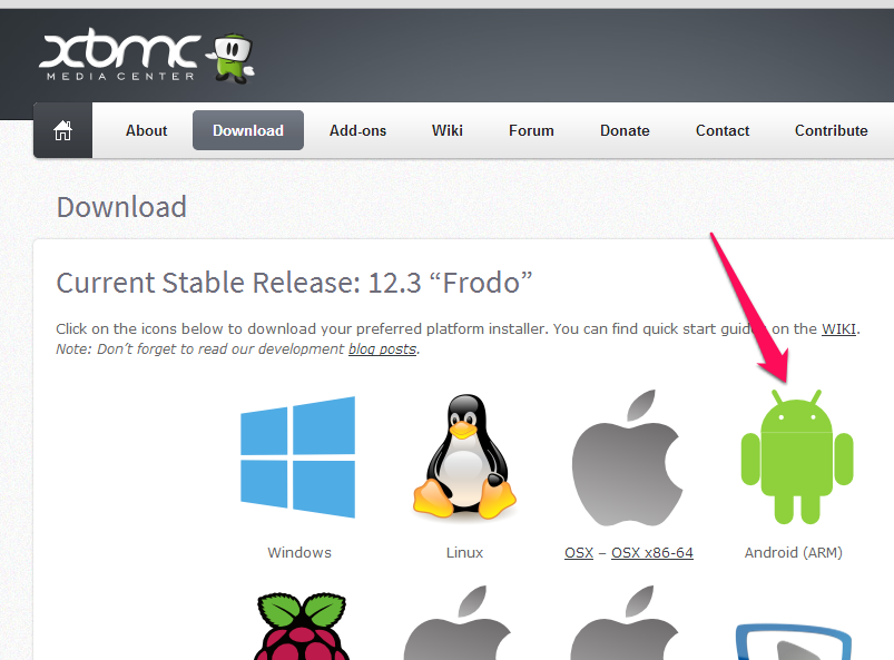 Visit xbmc.org and download the Android flavor of XBMC. Save the APK file into the same “sdkplatform-tools” folder UPDATE: Consider getting SPMC (XBMC on Ouya Fork), runs better on the fireTV.