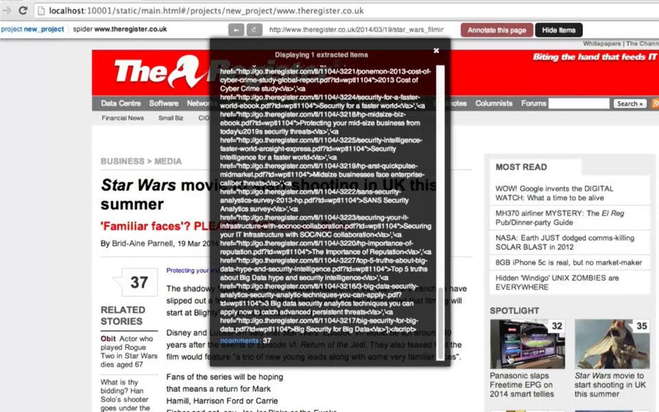 These are the guys who open-sourced Portia, and they at least get a mention because of it. They also have a service that’s similar to import.io that’s worth checking out. The way they describe it is: